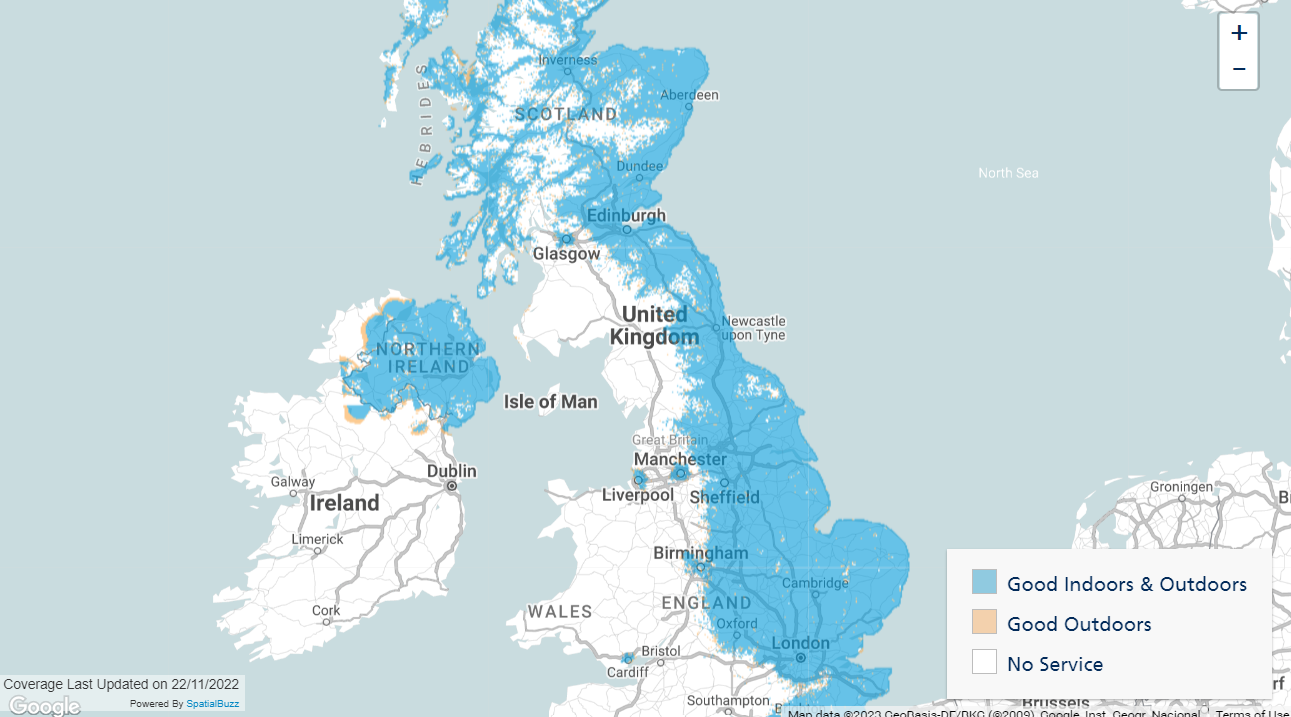 | O2 UK LTE-M Coverage | T-Mobile US NB-IoT Coverage |