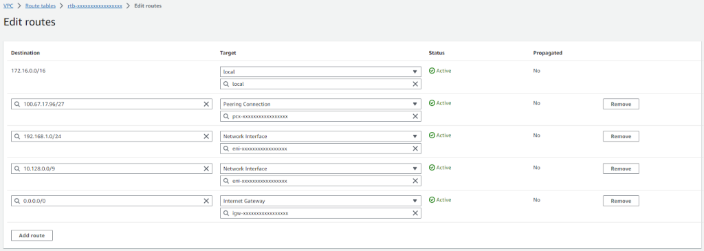 | 192.168.1.0/24 | Network Interface (ENI of the Gate Peer) |