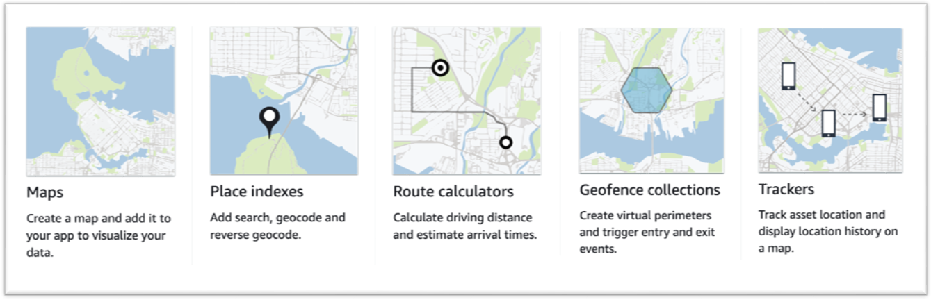 ALS has five main functions, as listed on the official AWS website: Amazon Location overview