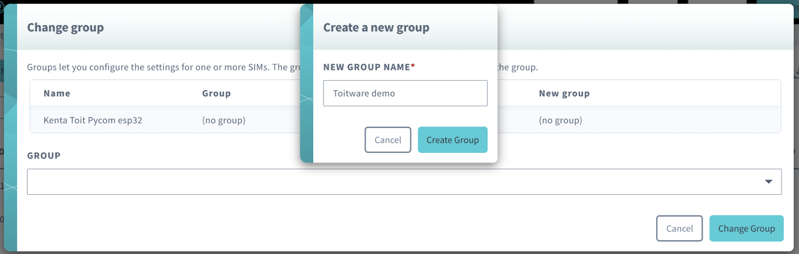 Let’s name it “Toitware demo” for now, create and assign the SIM to the group.