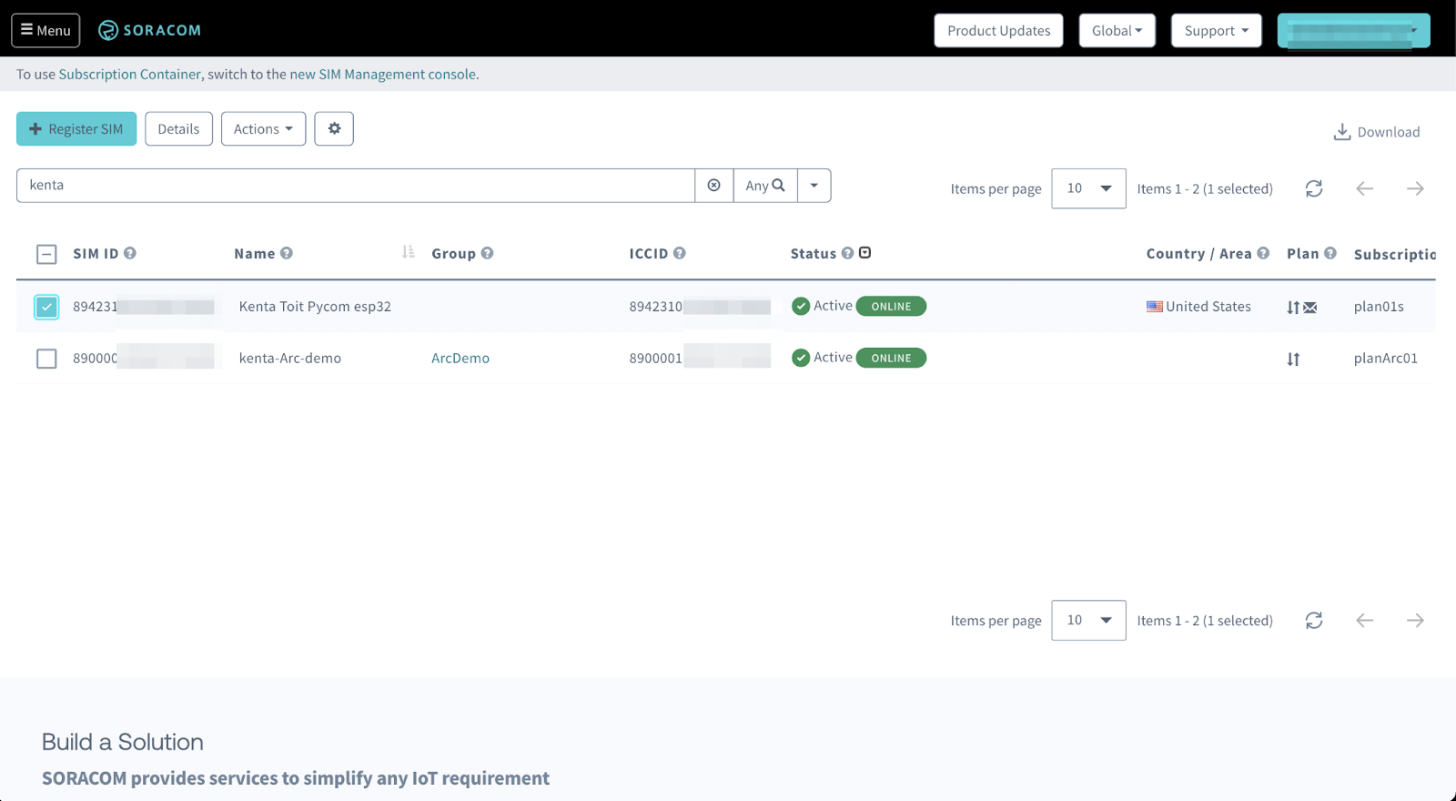 First, I go to the Soracom console and select my SIM.