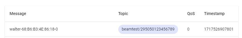 Serial.printf("Published '%s' on topic 'beamtest'rn", outgoingMsg);