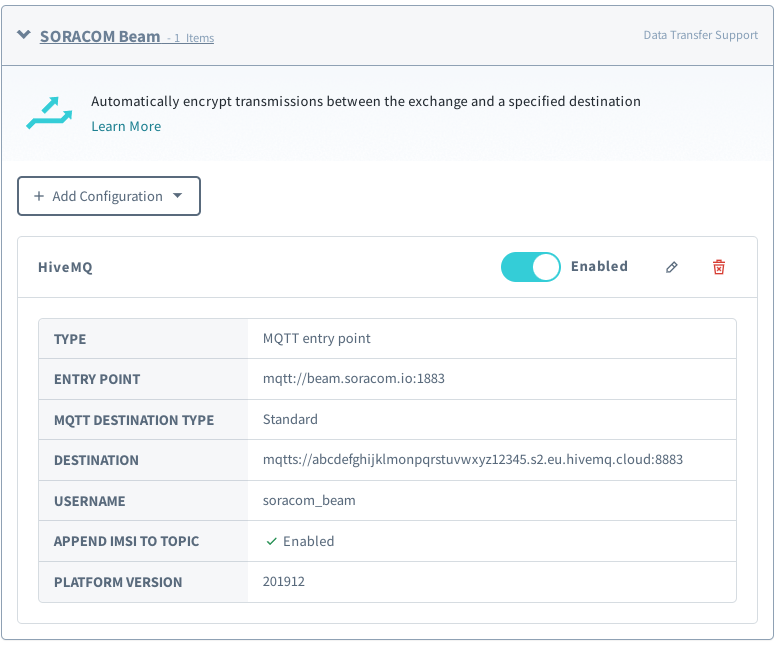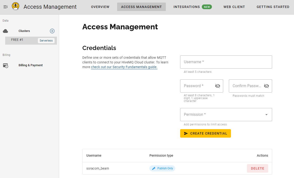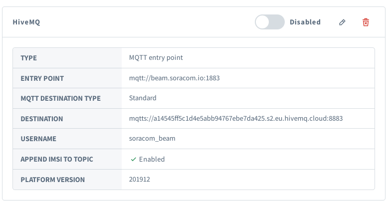 soracom_beam. - Password – The password from the credentials set created in HiveMQ access management.