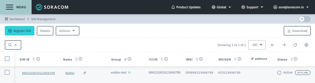1. If you have not done so already, create a Soracom account and register your Soracom SIM card to your account.