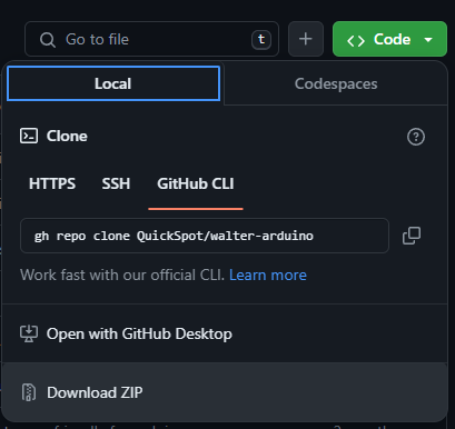 To do this easily, click Download ZIP from the Github page’s Code dropdown menu, and extract the walter-arduino-main folder into your libraries directory.