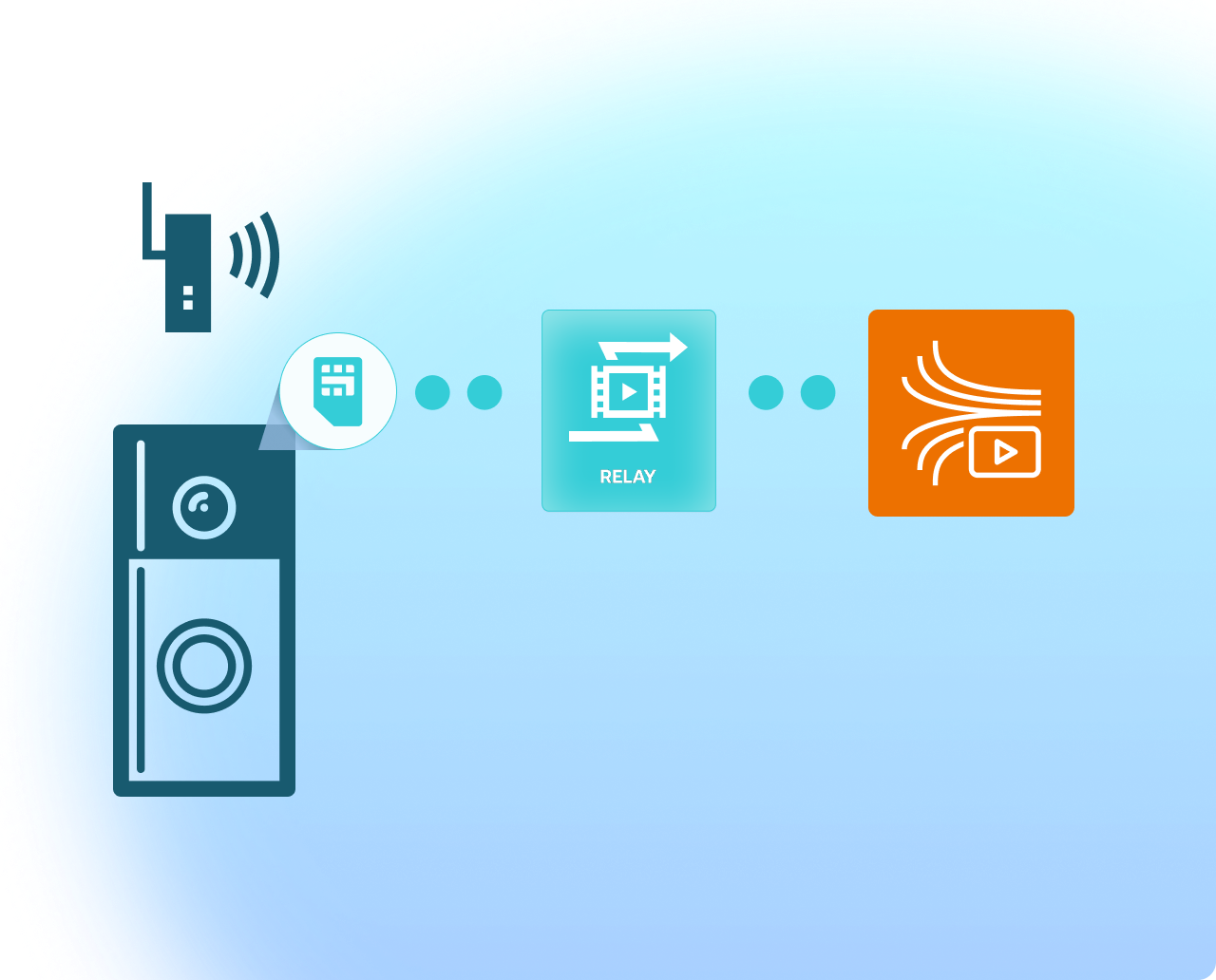 Relay connects to RTSP/RTP endpoints using Soracom Cellular SIMs or Soracom Arc and securely pulls live video on demand. It then transfers the stream into Amazon Kinesis Video Streams—either continuously or only when needed. This eliminates the need for NVRs, specialized KVS-compatible cameras, custom ingestion code, or firmware reflashing. For teams standardizing on KVS, Relay provides a stable long-term integration strategy for both modern and legacy camera hardware.