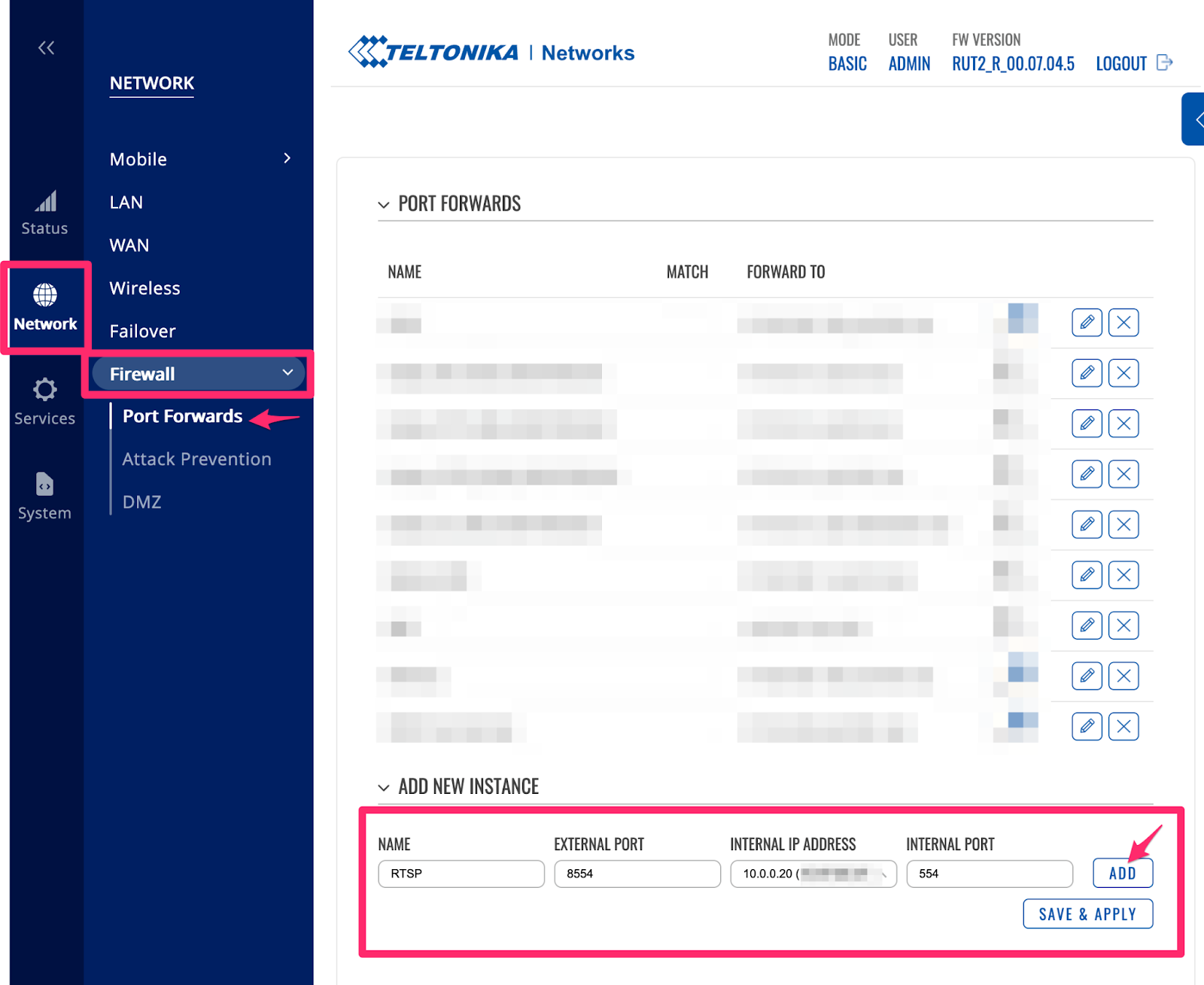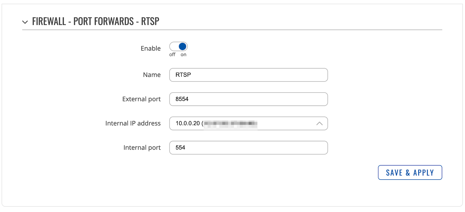 By completing this step, an RTCP coming to router port 8554 will be forwarded to the camera’s RTSP port 554.